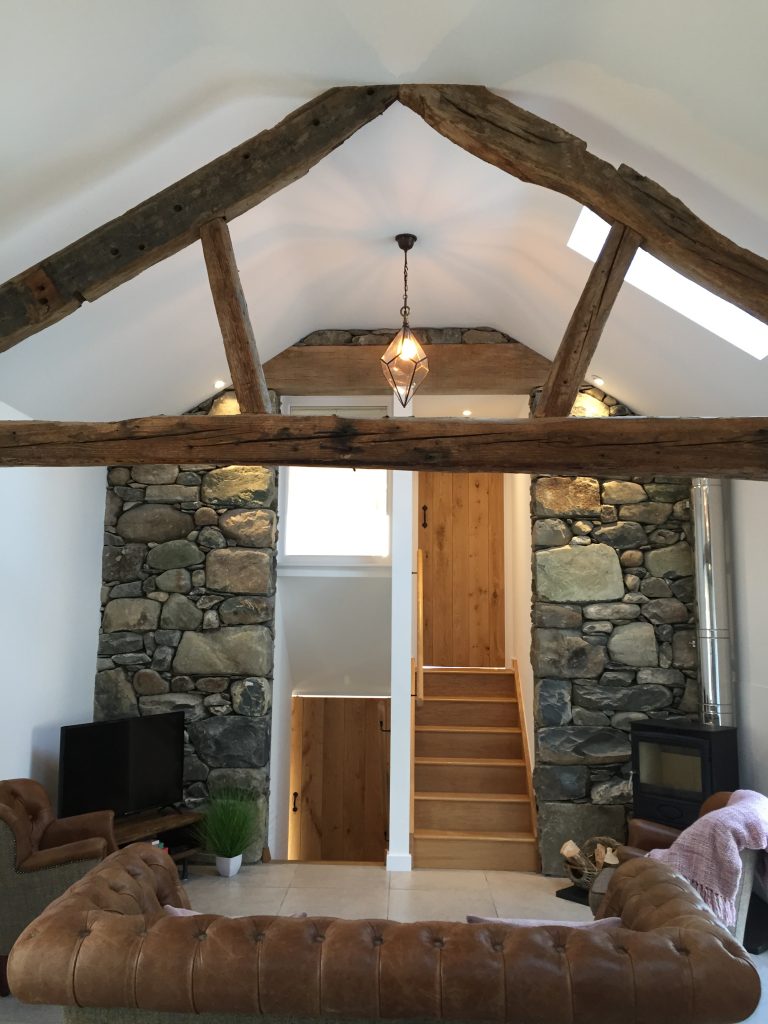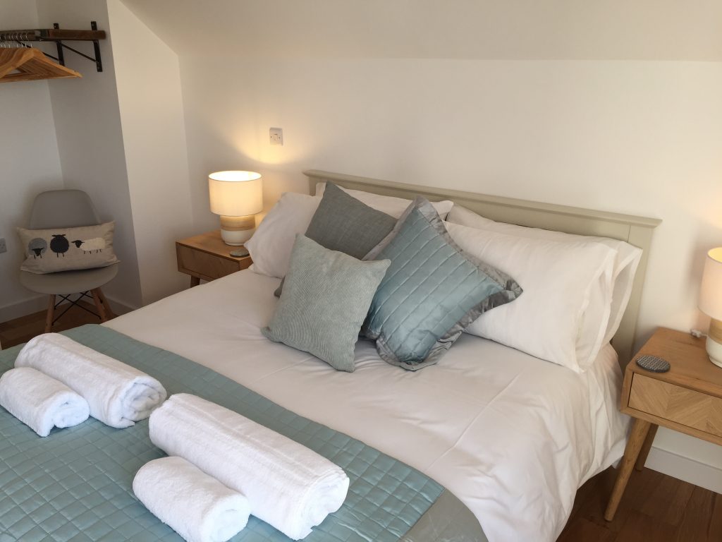 Carreg is a stunning property that sits in an elevated position overlooking the sea. The loving conversion programme ensured that many original features were retained providing an amazing interior design. The barn offers a comfortable living space alongside feature stone walls, exposed beams, tiled floors and underfloor heating, all of which are designed to enhance your stay. The door opens into the contemporary vaulted lounge, kitchen and dining area with stunning architectural symmetry. After dinner enjoy a board game, relax on the sofa, lose yourself in a good book or just catch up with your friends and family. For cosy nights in, light the wood burner, plan your holiday activities and maybe watch a film on TV. Steps from the lounge lead up to a fabulous king size bedroom with stunning sea views and an en-suite and down into a lovely bedroom via a specially designed sliding door. The super king size bedroom has rural views and a stylish en-suite shower room. Both the bedrooms have quality bedlinen and excellent beds to ensure a good night’s rest. This luxury barn is a real pleasure to stay in with lovely views to wake up to.